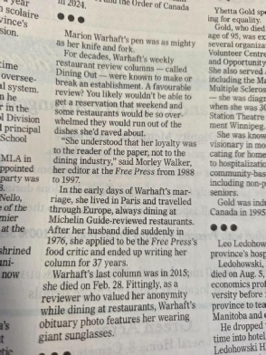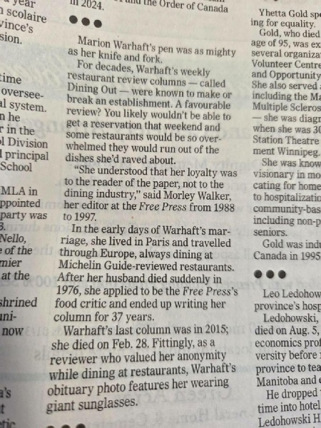 Warhaft, who has written the weekly restaurant column every Friday for the