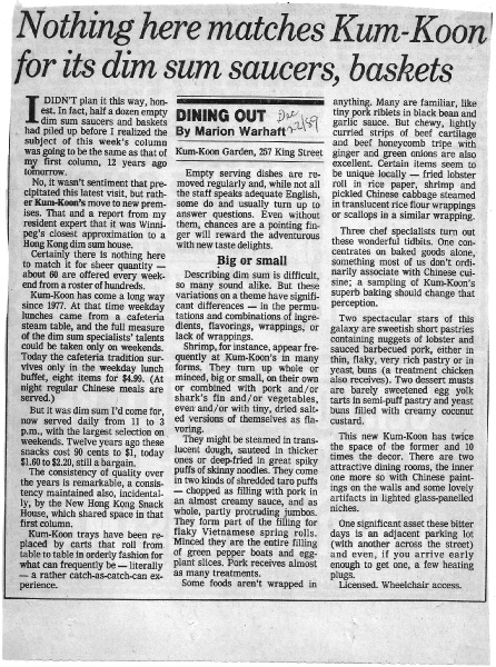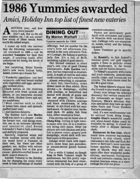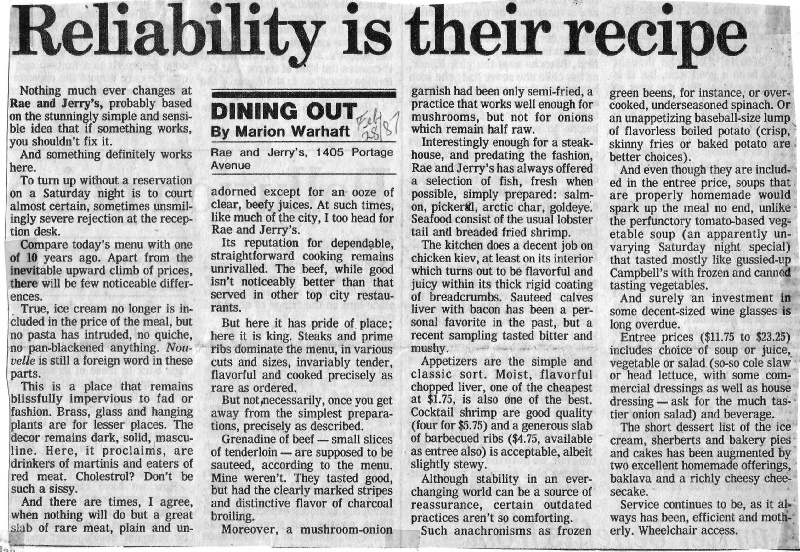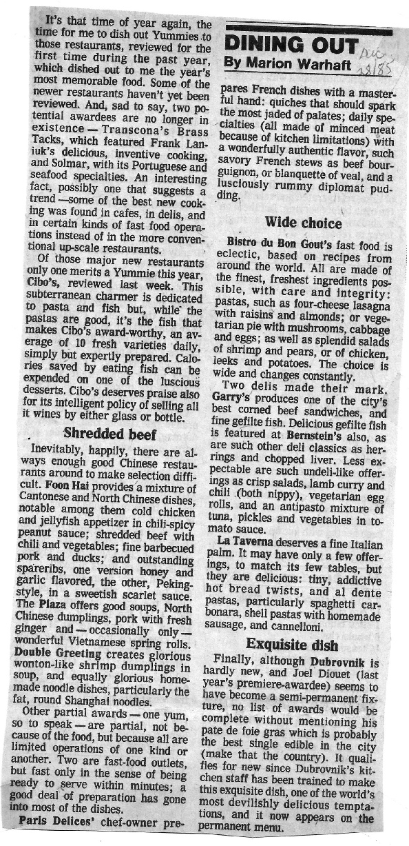 Warhaft, who has written the weekly restaurant column every Friday for the