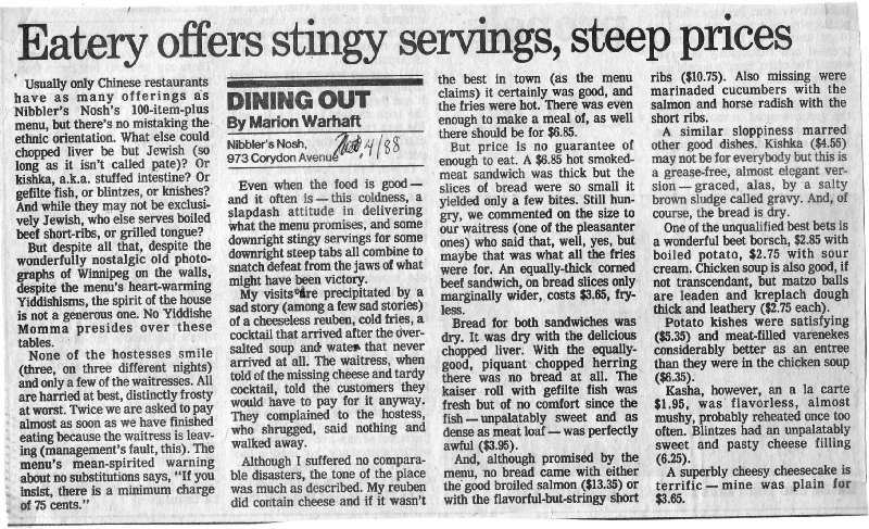 owner Winnipeg's Nibbler Nosh restaurant. He is especially embittered by a